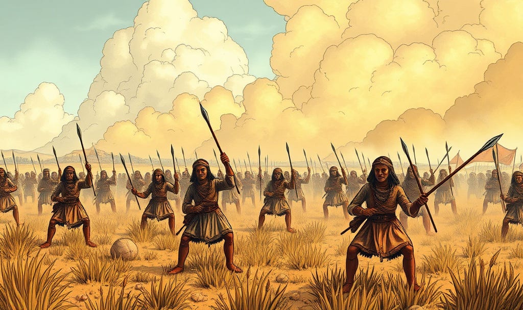 Early the next day we conquistadors said mass and marched. We passed through the savannahs where we faced earlier attack. We approached the town of Cintla. There we met on an open plain. The warriors were so numerous they covered the plain. They rushed on us like mad dogs. They showered us with clouds of arrows, javelins and stones. On the first volley 70 of us were wounded. Fighting hand to hand they did great damage with lances. One soldier fell dead from an arrow to the ear. With our muskets and crossbows and swordplay we kept them at bay. Mesa, our artilleryman, killed many of them with his cannon.