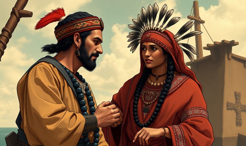 GONZALO GUERRERO: My friend, You go. I cannot leave. My face is tattooed. My ears are pierced. I am married with three handsome boys. Give me the beads you have brought.