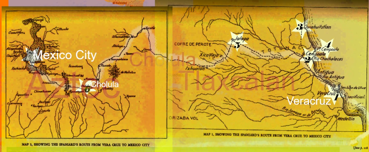 CEMPOALANS: Don’t go that way. Those people betray. Montezuma keeps a garrison in that town. Go thru Tlaxcala.