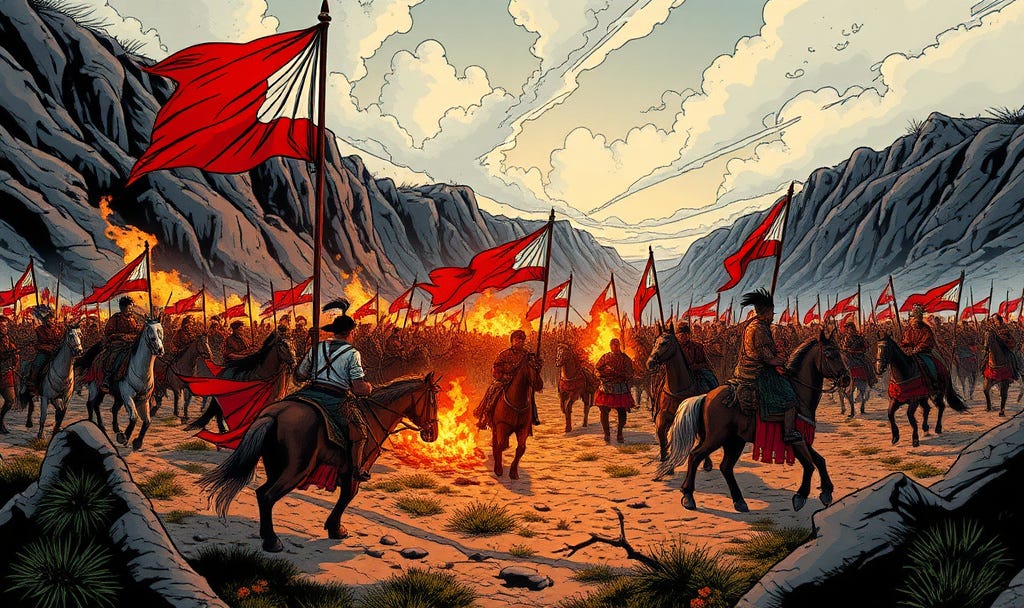We fought back with fire. They began to retreat into some ravines, where 40,000 warriors under General Xicotenga lay in ambush, all wearing the red and white standard of Xicotenga. The ground was too broken for our horses to charge, but we made our way. Their archery, lances and broadswords hurt us, as did the hail of stones from their slings. When we reached level ground, we paid them back with our artillery and horseman. We slew many but dared not break formation as we were surrounded on all sides.
