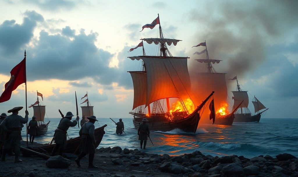 There we talked to Cortes about destroying our ships at once. This would keep anyone from leaving again, and we would be better to have the sailors with us than in port. This was done after stripping everything from the ships. When the ships were destroyed, we made preparations to march onto Mexico City inland.